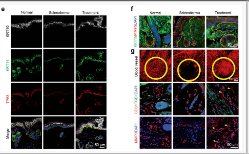 2022年3月22日,中国医学科学院/北京协和医院冷泠,张抒扬及国家应急防控药物工程技术研究中心钟武共同通讯在《Advanced Science》杂志上发表了题为“Application of an iPSC-Derived Organoid Model for Localized Scleroderma Therapy”的研究论文 (Ma, Li et al. 2022),该研究建立了LOS皮肤的蛋白质组图谱,并对LOS皮肤的病理特征进行了表征,建立了人类诱导的多能干细胞来源的上皮和间充质(EM)类器官模型。