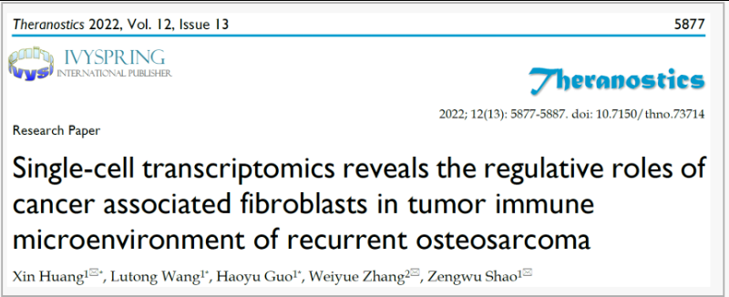 本研究在前期研究GSE152048和GSE162454的基础上,利用scRNA-seq和生物信息学技术揭示CAFs在复发性OS TME中的调控作用。这可能在单细胞水平上促进对CAFs在复发性骨肉瘤TME中的作用和机制的理解,为骨肉瘤的治疗提供新的靶点。