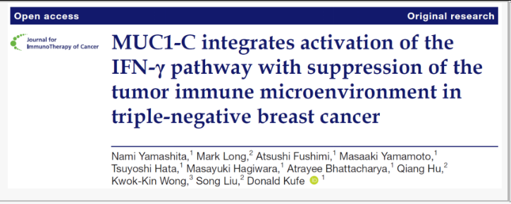 MUC1-C是一种在TNBC细胞中异常表达的致癌蛋白。MUC1-C通过诱导上皮细胞-间充质转化(EMT)、表观遗传重编程、干性、自我更新能力来驱动TNBC细胞进展中的谱系可塑性。EMT和癌症干细胞状态与免疫逃避有关,尽管机制尚不清楚。