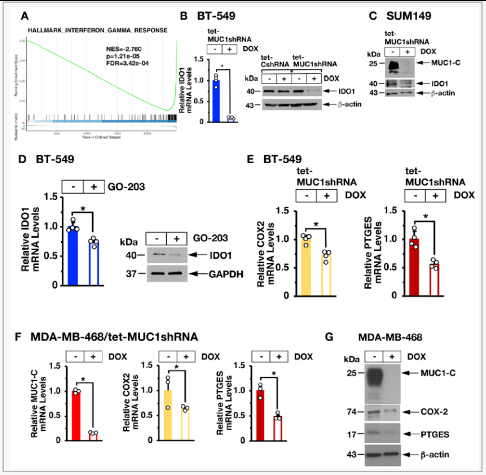 下调MUC1-C 抑制IRF1下游基因 IDO1 和 COX2/PTGES