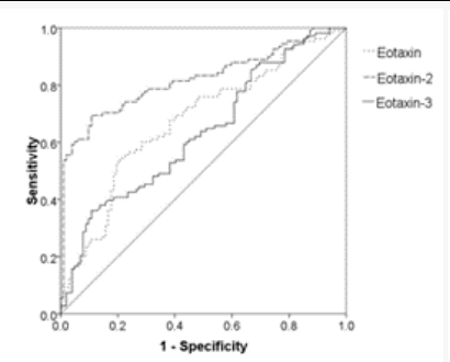 为了探究血清CCL11、CCL24、CCL26对PBC的诊断价值,本研究进行了ROC分析,CCL11、CCL24、CCL26 AUC值分别为0.675、0.82、0.632,结果提示CCL24是诊断PBC最优的标志物。