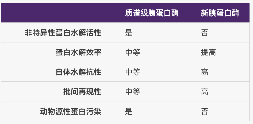 ● 新胰蛋白酶不具有常见于MS级胰蛋白酶中的非特异性裂解活性。