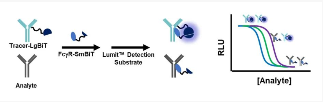Lumit™ FcγR Binding Immunoassays是基于NanoBiT® 蛋白互补技术的竞争性结合免疫检测。