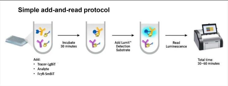 Promega开发了基于检测生物发光信号的均质型免疫检测平台(Lumit™)研究FcγR-Ab相互作用。