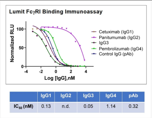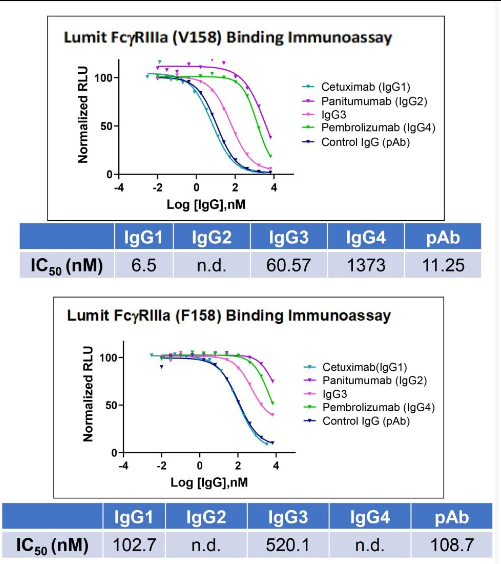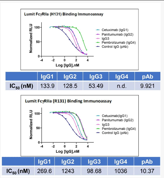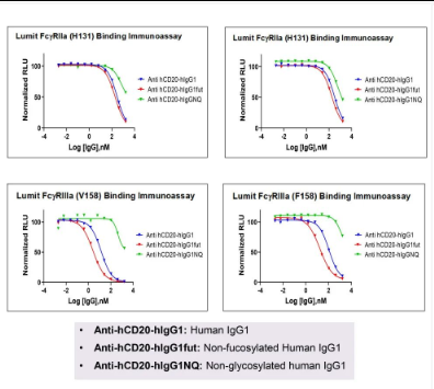 Lumit™ 检测方法可用于FcγRI,FcγRIIa (H131 和 R131),和FcγRIIIa (V158 和F158);