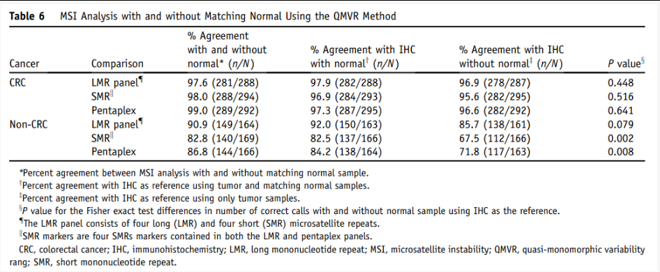表6.在有正常样本和无正常样本对照的情况下,使用QMVR方法进行MSI分析。