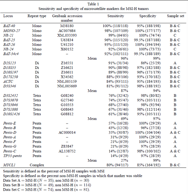 Pentaplex panel与Bethesda panel相比,具有更高的灵敏度和特异性, 该panel被修订版Bethesda指南推荐。