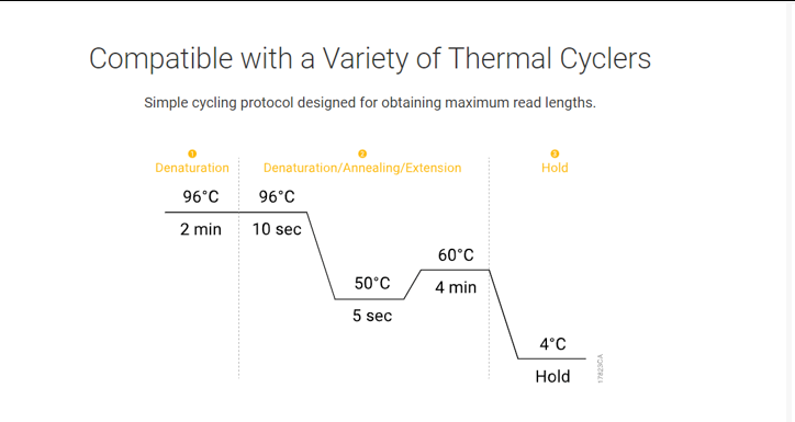 ProDye™ Terminator Sequencing System使用专用型热稳定DNA聚合酶以及与赛默飞世尔的BigDye™ Terminator v3.1 Cycle Sequencing Kit所含的相同染料。Promega ProDye™试剂可配套Spectrum Compact CE系统(Promega于2020年推出的台式毛细管电泳系统)以及SeqStudio基因分析仪和Applied Biosystems®基因分析仪等仪器上进行测序操作。