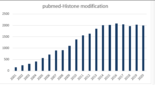 近年来,表观遗传一直是国自然的热点领域,在2019年的21个国自然研究热点中,表观遗传相关热点就占7个。其中,组蛋白修饰作为基因转录层次调控中重要的一环,已在2019年中标项目中超过80项。而且,组蛋白相关文章的发表数在近几年更是热度未减。