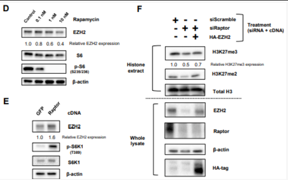 以上研究表明,两个mTORC通过两个独立、两个相互协调的途径调节与H3K27特定组蛋白甲基化相关的信号级联。
