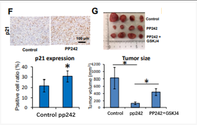 F . DMSO ( Control )或PP242治疗肿瘤p21的定量免疫组化分析;
