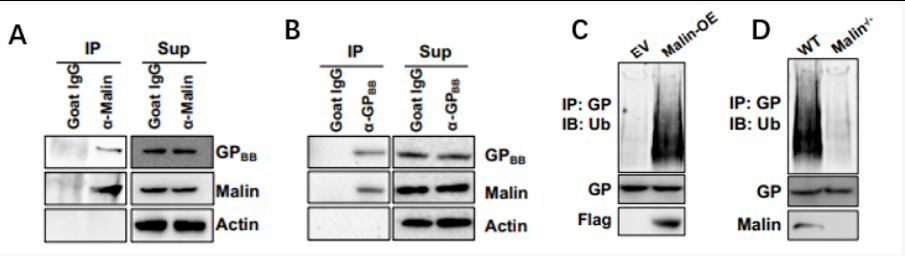通过免疫共沉淀和免疫印迹实验,Malin和GPBB之间有相互作用,而且GPBB是Malin的泛素化底物。