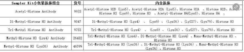 大家别忘了,CST还有方便大家研究信号通路初筛,性价比超高的Sampler Kit哦!小优也整理了组蛋白甲基化和乙酰化相关的Sampler Kit 产品,每支抗体平均700元左右,超值、超划算!