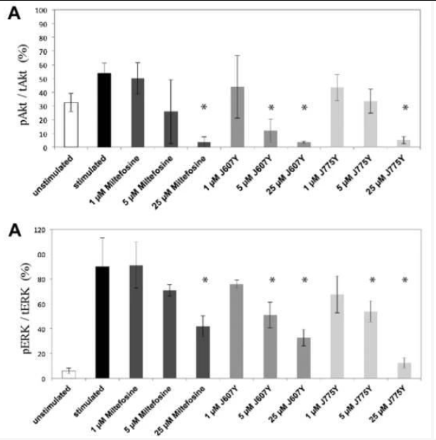 化合物剂量依赖性地降低了Akt和ERK的磷酸化比例(RBL-2H3 cells)。