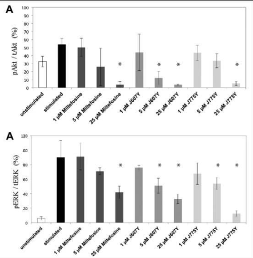 化合物剂量依赖性地降低了Akt和ERK的磷酸化比例(RBL-2H3 cells)。