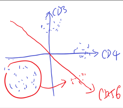 此时CD4和CD8以散点的形式表现其荧光强度,而被勾选的CD3以热力的方式表现其荧光强度,同一张二维平面图上出现了3个维度的信息,这就是最简单的降维分析。