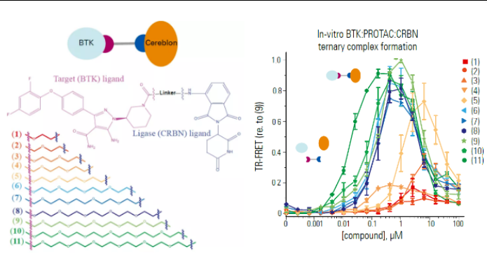 利用HTRF技术筛选合适的PROTAC分子。从结果来看,在该模型中较长的连接器能够更好地形成BTK-PROTAC-CRBN三元复合物。