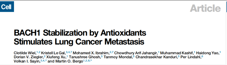 抗氧化剂通过稳定BACH1水平来刺激肺癌转移