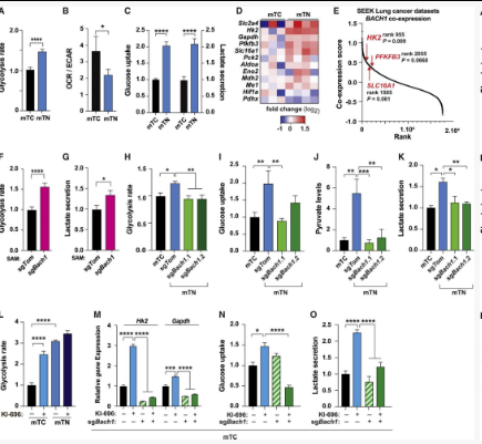 在本研究中,高BACH1水平在低NRF2活性的情况下刺激转移,并且BACH1可以通过外源性和内源性抗氧化剂来稳定。重点是,作者发现BACH1在没有抗氧化剂的情况下是亲转移的。NRF2的激活,就像补充抗氧化剂一样,增加Hk2和Gapdh的转录,刺激糖酵解,并以BACH1依赖的方式增加幼稚肺癌细胞的迁移。因此,含有NRF2/KEAP1突变的癌细胞的一个可能的优势是激活BACH1诱导的糖酵解。
