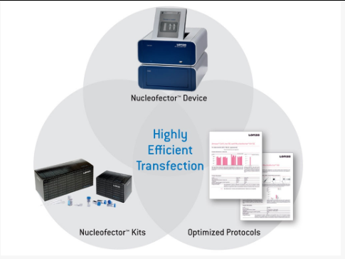 ② Nucleofector™套件,包含专用的Nucleofector™解决方案和所需试剂耗材。这些充当高转染效率和细胞生存力的保护环境,同时保持生理相关的细胞状况。还提供了指定的Nucleofection容器,移液管和荧光阳性对照载体(pmaxGFP™对照载体)。