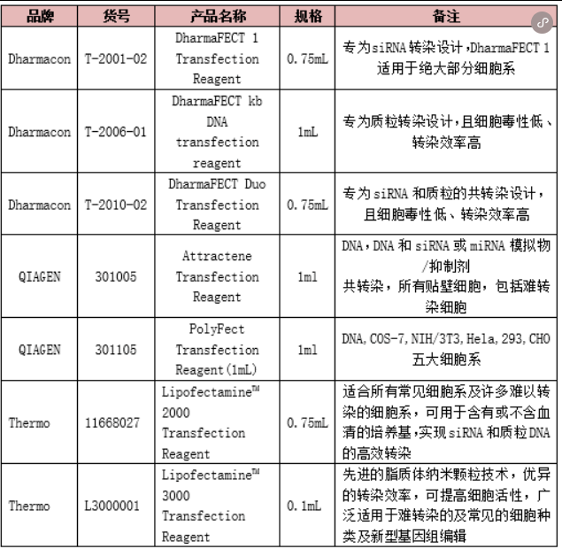 ⑤ 转染底物包括DNA,mRNA,miRNA,siRNA,肽或蛋白质。
