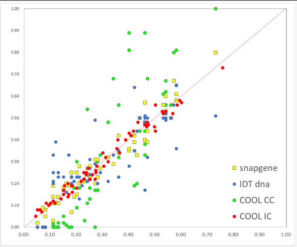 那么是否说明其他两个方法(IDT/COOL CC)优化的不好?并不是,只能说明,snapgene与COOL IC两种方法使用的仅是常见的优化标准之一,并不是唯一的优化算法。