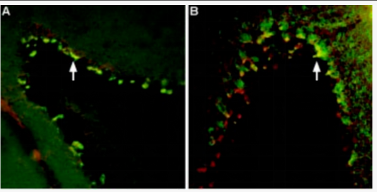 A:使用Tityustoxin-Kα-ATTO Fluor-594(#STT-360-AR)(红色)对自由漂浮的小鼠脑切片进行多重染色。然后,依次使用抗Kv1.2 (KCNA2) 抗体(#APC-010)(1:200)和山羊抗兔抗体-AlexaFluor-488(绿色)对切片进行染色。在小脑的篮状结构(黄色染色,箭头)中同时检出Tityustoxin-Kα-ATTO Fluor-594和KV1.2。B:依次使用Tityustoxin-Kα-ATTO Fluor-594(红色)和细小清蛋白抗体标记相同脑切片。Tityustoxin-Kα-ATTO Fluor-594(红色)标记小脑的篮状结构(箭头)。细小清蛋白不仅将篮状结构染色,还将浦肯野细胞体染色。二者之间的共定位以黄色表示。