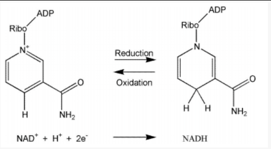 以NAD为例,如图所示,在脱氢酶的作用下,催化脱氢传递给给β-NAD+,使之形成还原型β-NADH。NADH在340nm有特征性吸收峰,而NAD在340nm无特征性吸收峰,利用其偶联的脱氢酶(工具酶)反应,根据340nm吸光度的变化,可以测定物质的浓度或活性。同理,NADPH和NADP也是如此。