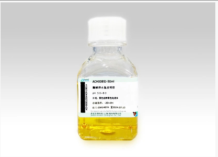 酶解深水鱼皮明胶,来源于深水鱼皮胶原蛋白,是组织胞外基质中含量丰富的蛋白质。它是一种生物活性物质。本品为50%的水溶液,可用于免疫封闭。