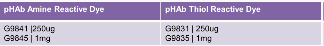 pHAb染料具有两种不同的活性基团,分别用于与伯胺或硫醇反应性基团发生反应。