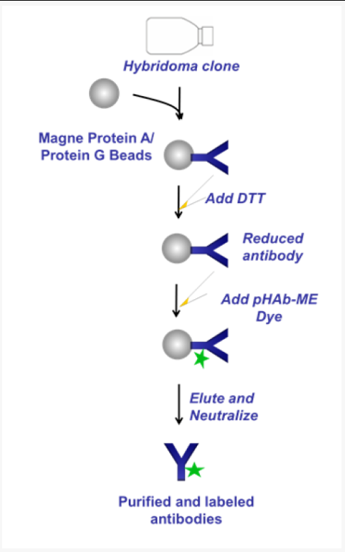 ● 一种经过优化的方法可以直接从细胞培养基中将pHAb染料与抗体偶联;