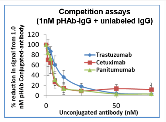 竞争测定是通过检测未偶联的抗体对偶联有pHAb染料的抗体内化作用的抑制来进行的。