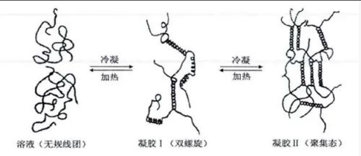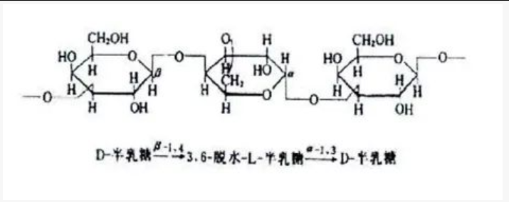 琼脂糖(图1)是一种由半乳糖和内醚半乳糖组成的线性多糖,呈白色或微黄色粉末,无味,可溶于热水、二甲基亚砜和甲酰胺溶液。它具有溶胶碍热可逆特性,凝固和溶化温度分别指胶液凝固和凝胶融化时的温度。琼脂糖溶液冷却时,分子链形成双螺旋结构,进一步冷却后形成坚硬的凝胶。琼脂糖的凝胶(图2)性质受其分子结构影响,且由于含负电基团较少,它比琼胶具有更优的性质,如低硫酸根含量、高凝胶强度和低电内渗。