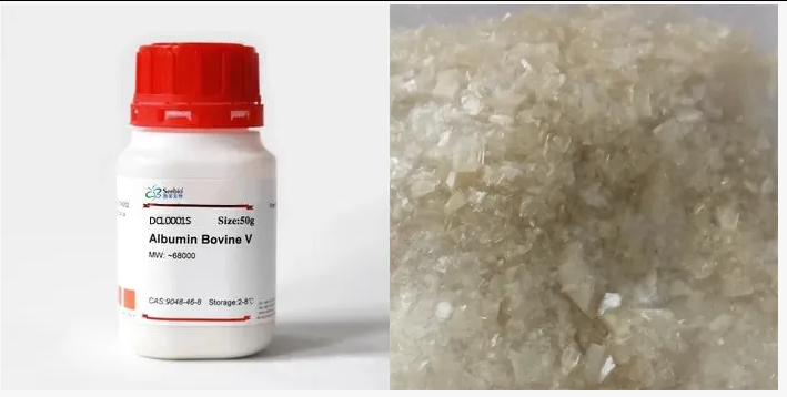 牛血清白蛋白(Bovine serum albumin, BSA),CAS号9048-46-8,是牛血清中的一种球蛋白,包含583个氨基酸残基,分子量为66.430 kDa,等电点为4.7,又称为第五组分(Fraction V from bovine serum)。西宝生物提供的诊断级别的牛血清白蛋白(BSA),经特殊工艺加工,无蛋白酶,含有极低的内毒素、脂肪酸与牛免疫球蛋白(IgG)水平,可以满足大部分常规实验需求,可用作蛋白酶稳定剂、稀释剂、免疫封闭剂和蛋白标准品,以及具高灵敏度要求的免疫分析检测、细胞培养和杂交实验等,广泛应用于生化科研及诊断产品开发领域。