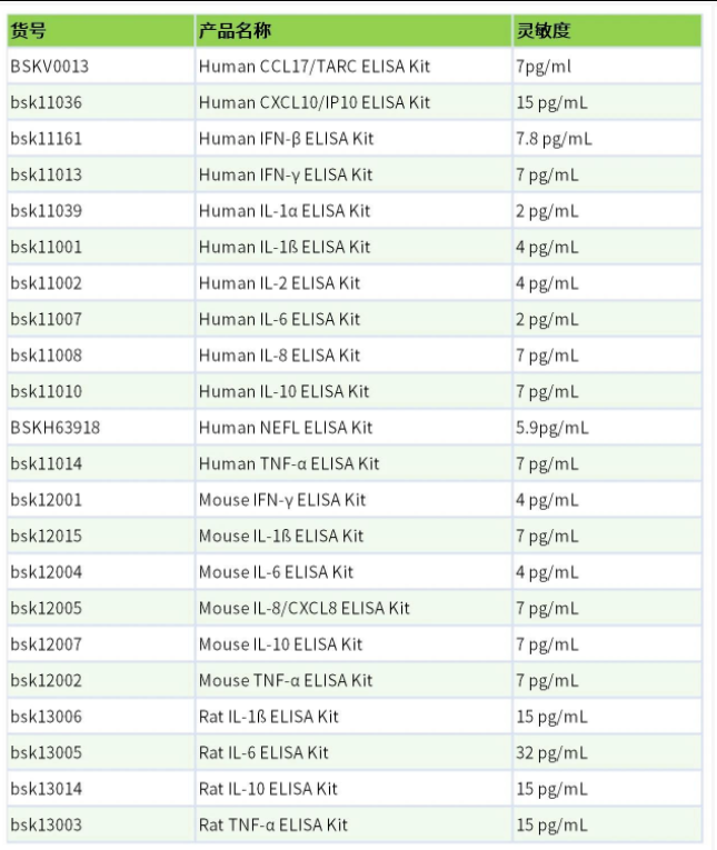 Bioss提供高质量、高灵敏度的ELISA试剂盒,靶点涵盖全面,包括细胞因子、生长因子和受体等,广泛应用于神经科学研究: