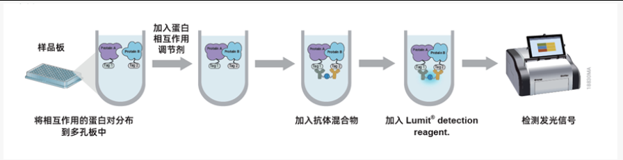图2.Lumit® Anti-Tag Protein Interaction Reagents检测流程。