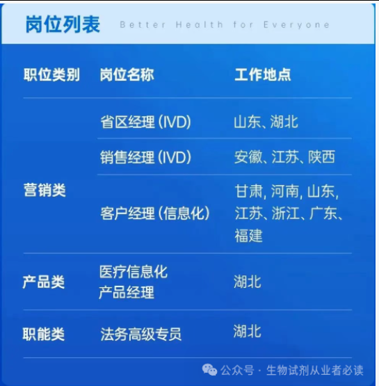 专业背景:生物学/医学检验/生物工程等相关专业优先,有生命科学产品销售经验者可放宽。