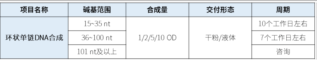 注:环状单链DNA合成可兼容生工生物所有DNA修饰基团。