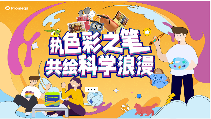 Promega诚邀您展开想象的翅膀,为我们的生命科学调色盘画作底稿赋予一个既简洁明了又充满创意的主题和释义。释放您的创意火花,让科学的世界因您的命名而光彩夺目!