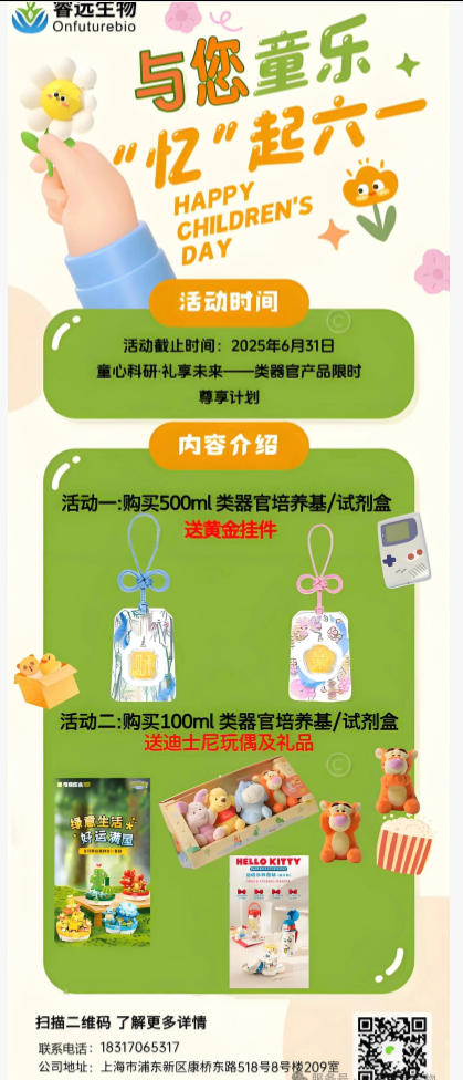 内容:购买100ml类器官培养基或试剂盒,即可获赠迪士尼正版玩偶或专属礼品一份。