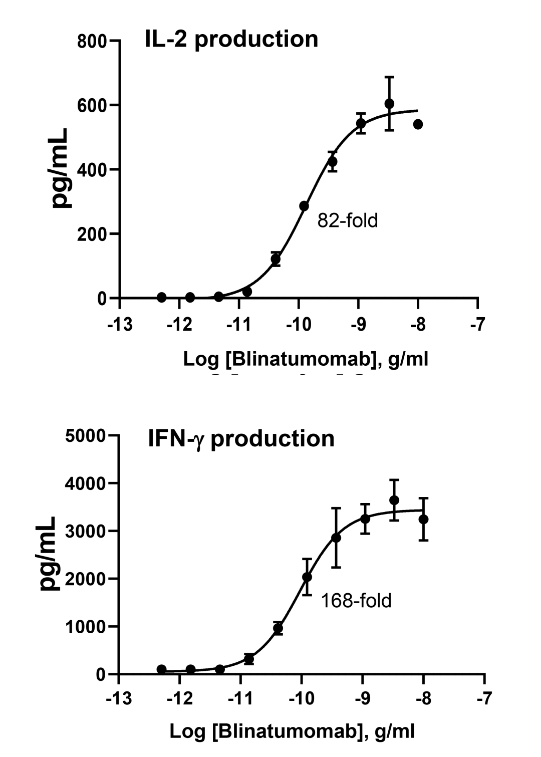 ● 双重结合可诱导T细胞活化和增殖、细胞因子释放和肿瘤细胞特异性裂解。