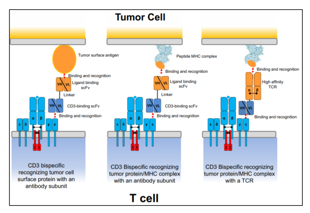 ● CD3双特异性分子可同时结合T细胞上的CD3和肿瘤细胞上的肿瘤抗原;