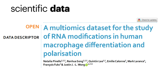 【3】Pinello N, Song R, Lee Q, et al. A multiomics dataset for the study of RNA modifications in human macrophage differentiation and polarisation[J]. Scientific Data, 2024, 11(1):252. DOI:10.1038/s41597-024-03076-8.