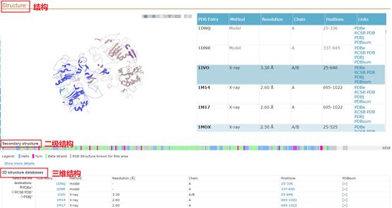 在结构中,可以了解蛋白的二级结构位置以及蛋白的三维结构等。