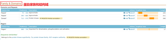 在蛋白家族和结构域中,可以看到结构域和蛋白家族的一些信息。