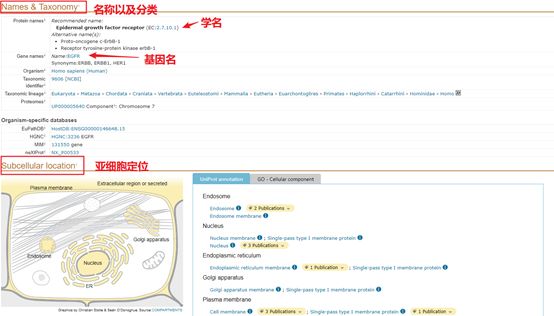 在名称及分类中可以看到蛋白质名称,基因名称等,在亚细胞定位中可以看到蛋白的定位位置等。