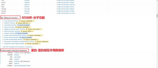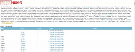 在相互作用中,可以看到蛋白亚基的结构,蛋白-蛋白相互作用的相关信息和数据库。