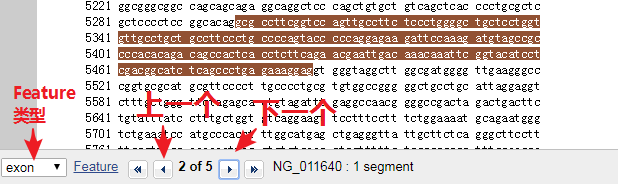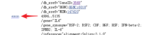 4. 该页面中Feature位置中,找到左侧的任一“exon”并点击,