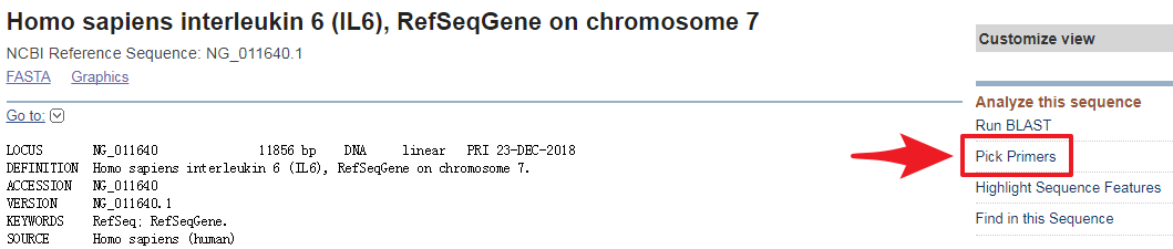 有了这段序列,设计引物就很简单了,小编比较喜欢使用NCBI自带的引物设计功能: