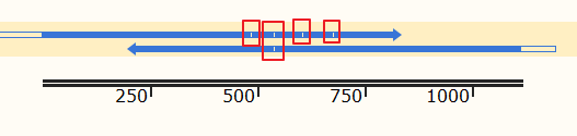 从比对结果图中可以看到,正向测序结果(蓝色右箭头)有4个空白,即4个位点与理论序列不符;而反向测序结果(蓝色左箭头)有1个不符。接下来,详细分析这几个不匹配的位点。
